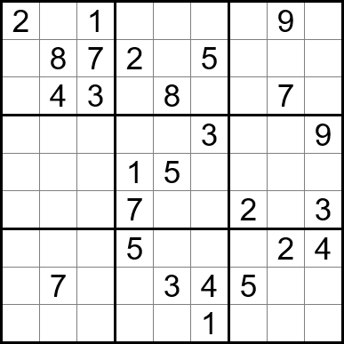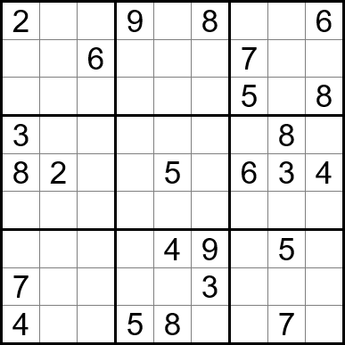 Sudoku is easy to play and the rules are simple. Fill in the blanks so that each row, each column, and each of the nine 3x3 grids contain one instance of each of the numbers 1 through 9.