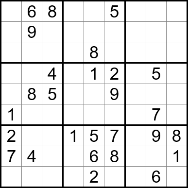 Sudoku is easy to play and the rules are simple. Fill in the blanks so that each row, each column, and each of the nine 3x3 grids contain one instance of each of the numbers 1 through 9.