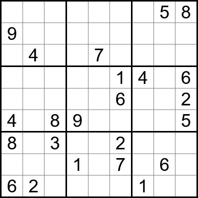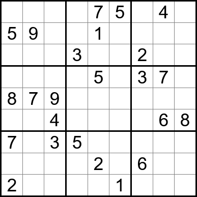 Sudoku is easy to play and the rules are simple. Fill in the blanks so that each row, each column, and each of the nine 3x3 grids contain one instance of each of the numbers 1 through 9.