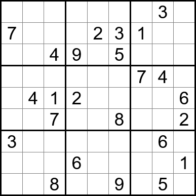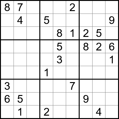 Sudoku is easy to play and the rules are simple. Fill in the blanks so that each row, each column, and each of the nine 3x3 grids contain one instance of each of the numbers 1 through 9.