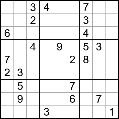 Sudoku is easy to play and the rules are simple. Fill in the blanks so that each row, each column, and each of the nine 3x3 grids contain one instance of each of the numbers 1 through 9.