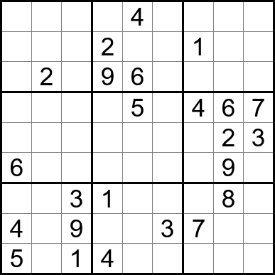Sudoku is easy to play and the rules are simple. Fill in the blanks so that each row, each column, and each of the nine 3x3 grids contain one instance of each of the numbers 1 through 9.