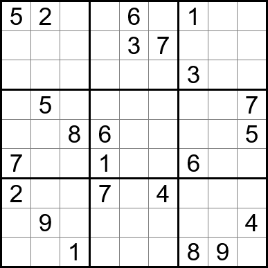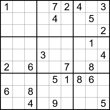 Sudoku is easy to play and the rules are simple. Fill in the blanks so that each row, each column, and each of the nine 3x3 grids contain one instance of each of the numbers 1 through 9.