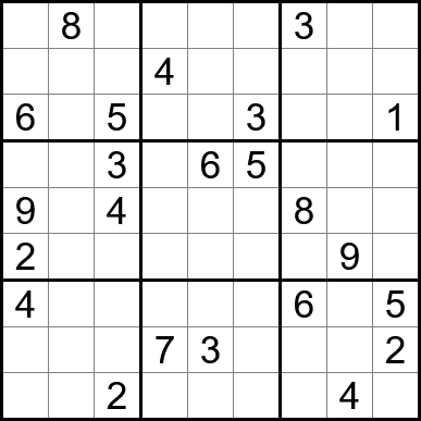 Sudoku is easy to play and the rules are simple. Fill in the blanks so that each row, each column, and each of the nine 3x3 grids contain one instance of each of the numbers 1 through 9.