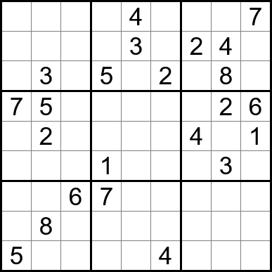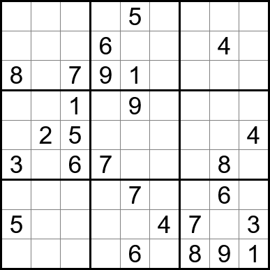 Sudoku is easy to play and the rules are simple. Fill in the blanks so that each row, each column, and each of the nine 3x3 grids contain one instance of each of the numbers 1 through 9.