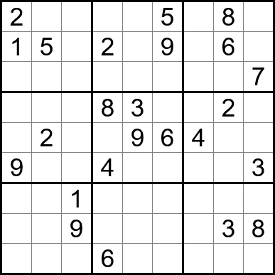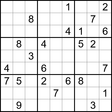 Sudoku is easy to play and the rules are simple. Fill in the blanks so that each row, each column, and each of the nine 3x3 grids contain one instance of each of the numbers 1 through 9.