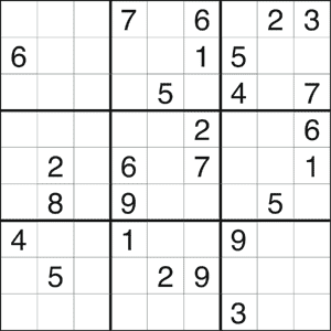 Sudoku is easy to play and the rules are simple. Fill in the blanks so that each row, each column, and each of the nine 3x3 grids contain one instance of each of the numbers 1 through 9.