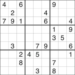 Sudoku is easy to play and the rules are simple. Fill in the blanks so that each row, each column, and each of the nine 3x3 grids contain one instance of each of the numbers 1 through 9.
