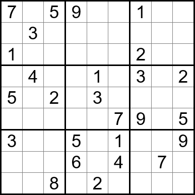 Sudoku is easy to play and the rules are simple. Fill in the blanks so that each row, each column, and each of the nine 3x3 grids contain one instance of each of the numbers 1 through 9.
