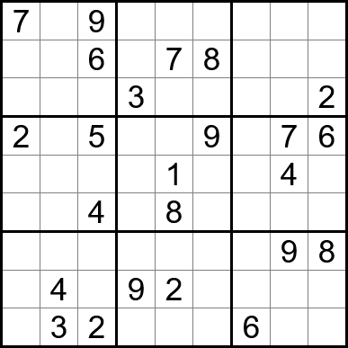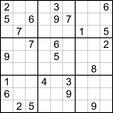 Sudoku is easy to play and the rules are simple. Fill in the blanks so that each row, each column, and each of the nine 3x3 grids contain one instance of each of the numbers 1 through 9.