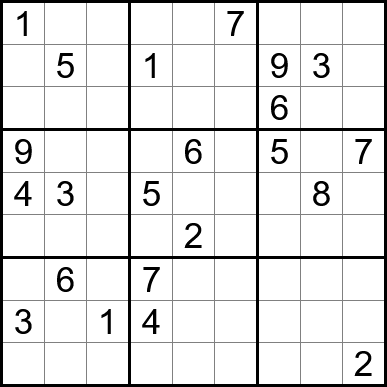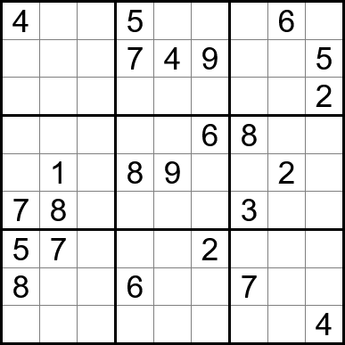 Sudoku is easy to play and the rules are simple. Fill in the blanks so that each row, each column, and each of the nine 3x3 grids contain one instance of each of the numbers 1 through 9.