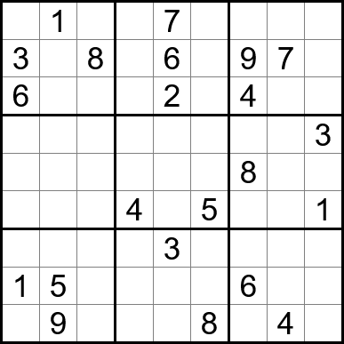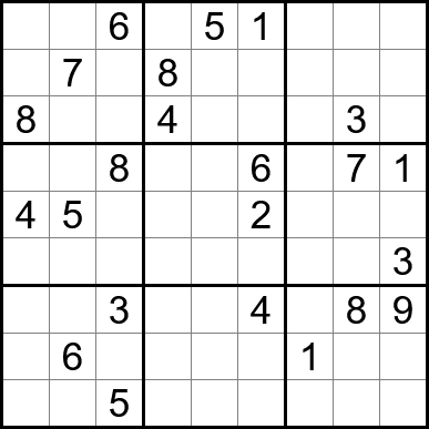 Sudoku is easy to play and the rules are simple. Fill in the blanks so that each row, each column, and each of the nine 3x3 grids contain one instance of each of the numbers 1 through 9.