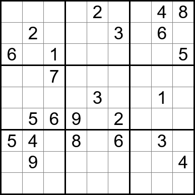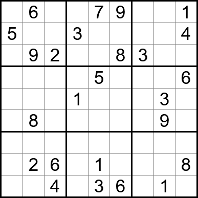 Sudoku is easy to play and the rules are simple. Fill in the blanks so that each row, each column, and each of the nine 3x3 grids contain one instance of each of the numbers 1 through 9.