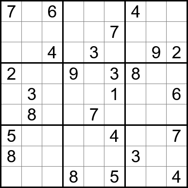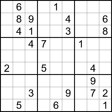 Sudoku is easy to play and the rules are simple. Fill in the blanks so that each row, each column, and each of the nine 3x3 grids contain one instance of each of the numbers 1 through 9.