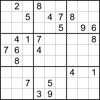 Sudoku is easy to play and the rules are simple. Fill in the blanks so that each row, each column, and each of the nine 3x3 grids contain one instance of each of the numbers 1 through 9.