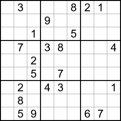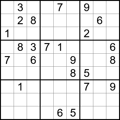 Sudoku is easy to play and the rules are simple. Fill in the blanks so that each row, each column, and each of the nine 3x3 grids contain one instance of each of the numbers 1 through 9.