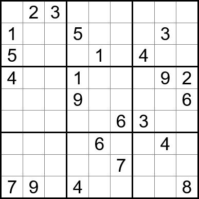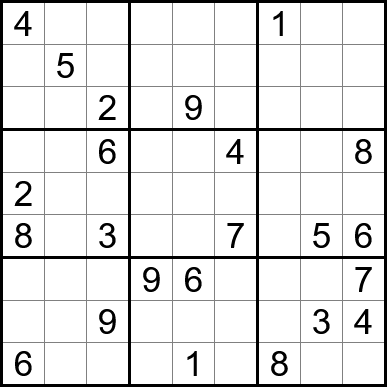 Sudoku is easy to play and the rules are simple. Fill in the blanks so that each row, each column, and each of the nine 3x3 grids contain one instance of each of the numbers 1 through 9.