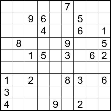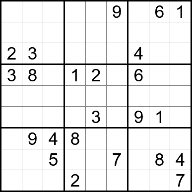 Sudoku is easy to play and the rules are simple. Fill in the blanks so that each row, each column, and each of the nine 3x3 grids contain one instance of each of the numbers 1 through 9.
