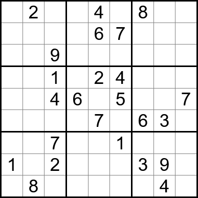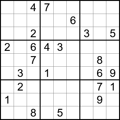 Sudoku is easy to play and the rules are simple. Fill in the blanks so that each row, each column, and each of the nine 3x3 grids contain one instance of each of the numbers 1 through 9.