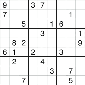 Sudoku is easy to play and the rules are simple. Fill in the blanks so that each row, each column, and each of the nine 3x3 grids contain one instance of each of the numbers 1 through 9.