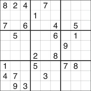 Sudoku is easy to play and the rules are simple. Fill in the blanks so that each row, each column, and each of the nine 3x3 grids contain one instance of each of the numbers 1 through 9.