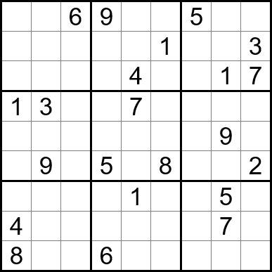 Sudoku is easy to play and the rules are simple. Fill in the blanks so that each row, each column, and each of the nine 3x3 grids contain one instance of each of the numbers 1 through 9.