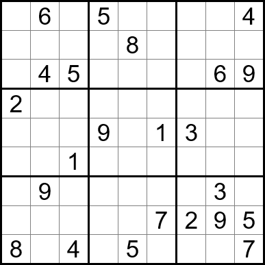 Sudoku is easy to play and the rules are simple. Fill in the blanks so that each row, each column, and each of the nine 3x3 grids contain one instance of each of the numbers 1 through 9.