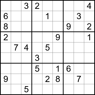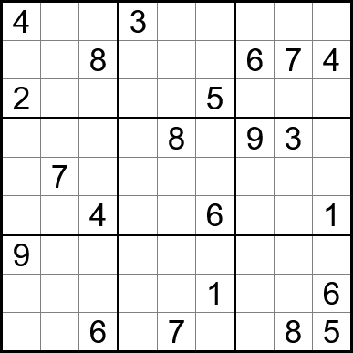 Sudoku is easy to play and the rules are simple. Fill in the blanks so that each row, each column, and each of the nine 3x3 grids contain one instance of each of the numbers 1 through 9.