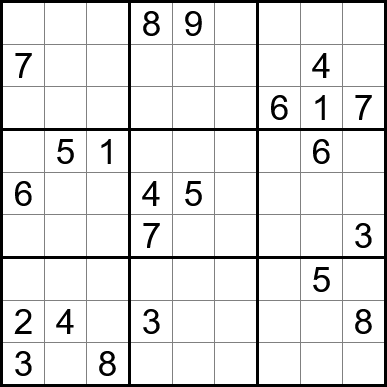 Sudoku is easy to play and the rules are simple. Fill in the blanks so that each row, each column, and each of the nine 3x3 grids contain one instance of each of the numbers 1 through 9.