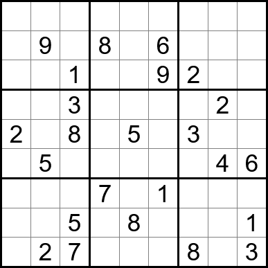 Sudoku is easy to play and the rules are simple. Fill in the blanks so that each row, each column, and each of the nine 3x3 grids contain one instance of each of the numbers 1 through 9.