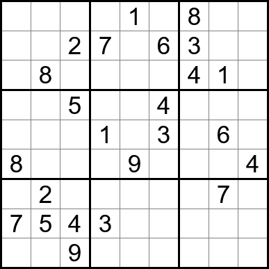 Sudoku is easy to play and the rules are simple. Fill in the blanks so that each row, each column, and each of the nine 3x3 grids contain one instance of each of the numbers 1 through 9.