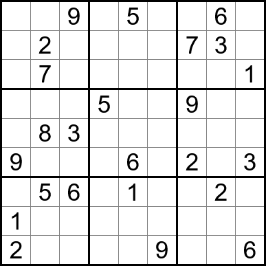 Sudoku is easy to play and the rules are simple. Fill in the blanks so that each row, each column, and each of the nine 3x3 grids contain one instance of each of the numbers 1 through 9.