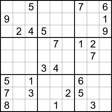 Sudoku is easy to play and the rules are simple. Fill in the blanks so that each row, each column, and each of the nine 3x3 grids contain one instance of each of the numbers 1 through 9.