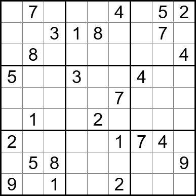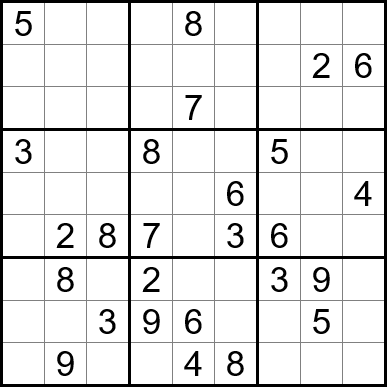 Sudoku is easy to play and the rules are simple. Fill in the blanks so that each row, each column, and each of the nine 3x3 grids contain one instance of each of the numbers 1 through 9.