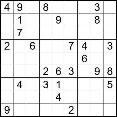 Sudoku is easy to play and the rules are simple. Fill in the blanks so that each row, each column, and each of the nine 3x3 grids contain one instance of each of the numbers 1 through 9.