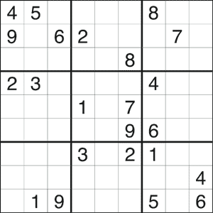 Sudoku is easy to play and the rules are simple. Fill in the blanks so that each row, each column, and each of the nine 3x3 grids contain one instance of each of the numbers 1 through 9.