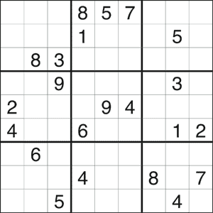 Sudoku is easy to play and the rules are simple. Fill in the blanks so that each row, each column, and each of the nine 3x3 grids contain one instance of each of the numbers 1 through 9.